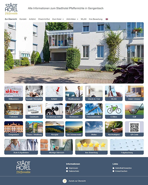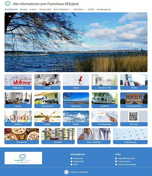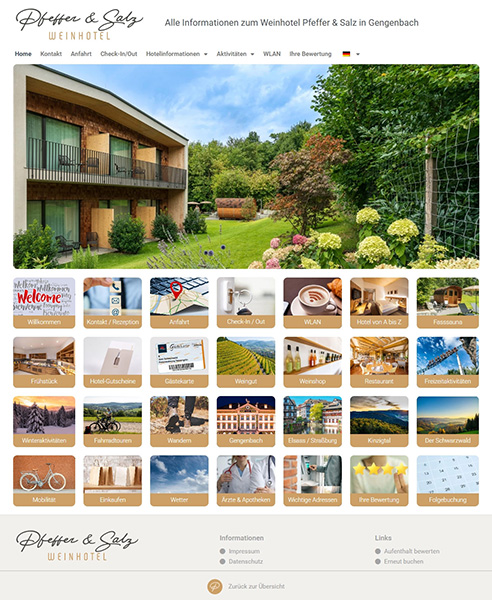 Wir nutzen jeweils ein neutrales Bild, welches zum Informationsgehalt passt. Wir können aber auf Wunsch auch Bilder von Ihnen verwenden. Klickt der Gast auf eine Kachel, dann findet er dort die dazugehörigen Informationen.